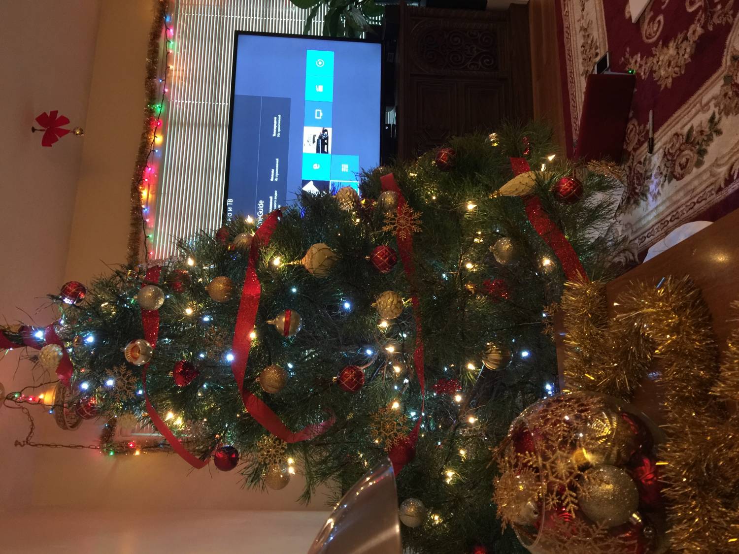 Сегодня елку перенаряжала)...ее дочь уже неделю назад нарядила!)... наврала на котов!...сказала что перевернули ее!...и пришлось маме все заново украшать!!!)))...наряжаю и ловлю себя на реалиях...у меня мишура в цвет флага России!!!...я не спецом)))...так получилось)))