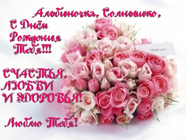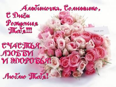Любимая моя Бинька!!!Поздравляю тебя с днем рождения! Дорогая, милая подружка! Я пожелать тебе хочу, Чтоб жизнь была, как мягкая игрушка, И многие проблемы были по плечу. Да что проблемы, главное, здоровье, Чтоб все болезни обходили стороной. Удачи, счастья, а вместо послесловья: Я счастлива дружить с тобой!!! Оставайся всегда такой же красивой,открытой и чистой душой.Я тебя очень люблю и благодарна,что жизнь меня свела с тобой!!!