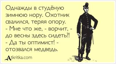 Цитата Struna (  ) У нас минус - рано ещё..мурчать подругайка кинула по ватцапу сейчас...прям в тему))) Однажды в студеную зимнюю пору лошадка писюлькой прилипла к забору. Она и легалась,она и брыкалась... Лошадка ушла,а писюлька осталась... БУДЬТЕ БДИТЕЛЬНЫ!!!ИДУТ КРЕЩЕНСКИЕ МОРОЗЫ!!! А в след за лошадкой шагала ослица... В такую писюльку нельзя не влюбиться... Дыханьем своим отогрела пистон... Для жаждущих секса мороз не почем!!! ну и подругайки у меня))))))))))