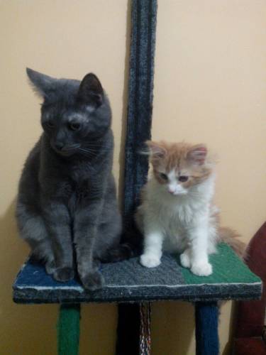 Добавлено (09.02.15, 21:28) --------------------------------------------- Маленькая серенькая - девочка Ланя, ей 4 года, а большой черный - кот Масяня, ему 2 года.