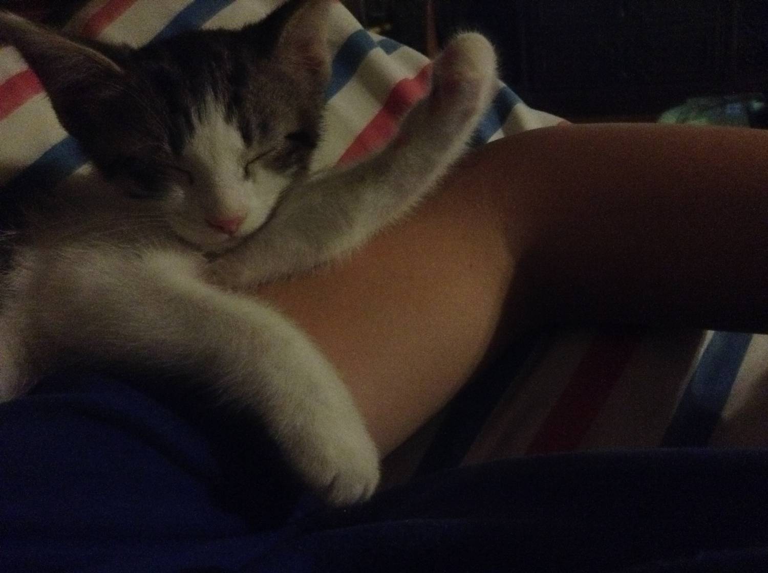Взяли ещё одного питомца. Назвали Флафи, Т.к пушистый. В первый же день, котёнок принял морскую свинку за тёплую подушку.