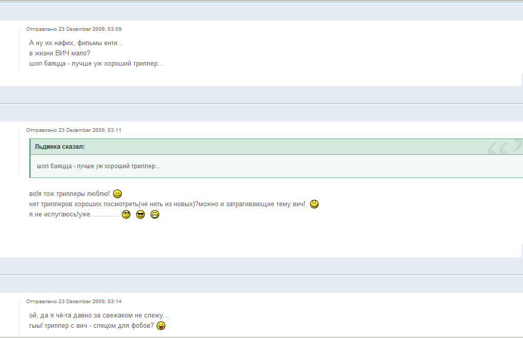 В общем, как всегда, когда просят назвать нормальные фильмы, - забываешь, какие вообще смотрел.. Впрочем, из нескольких тысяч фильмов, которые я смотрел, трудно запомнить названия всех двух сотен нормальных..