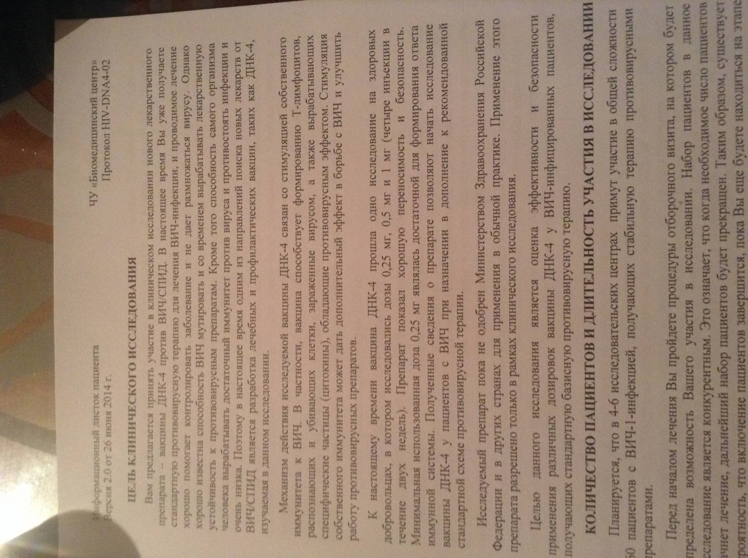 выходи с организаторами на связь - возьми обязательно емейл вотсапп скайп. далее держись костяка исследования. если у тебя нет коинфекций - возможно на тебе и будет найдено финансирование проекта. Никому не интересна вакцина. но интерес к монотерапии с вакциной - огромен!